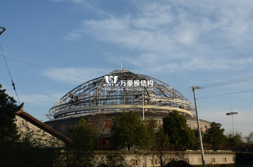 余姚天華村文化廣場鋼結構工程,本工程頂棚采用鋼結構制作。同時用膜結構蓋頂,美觀大氣。