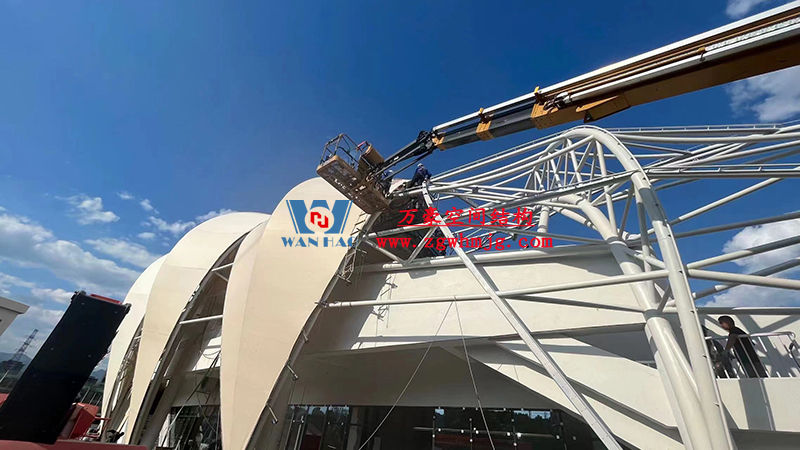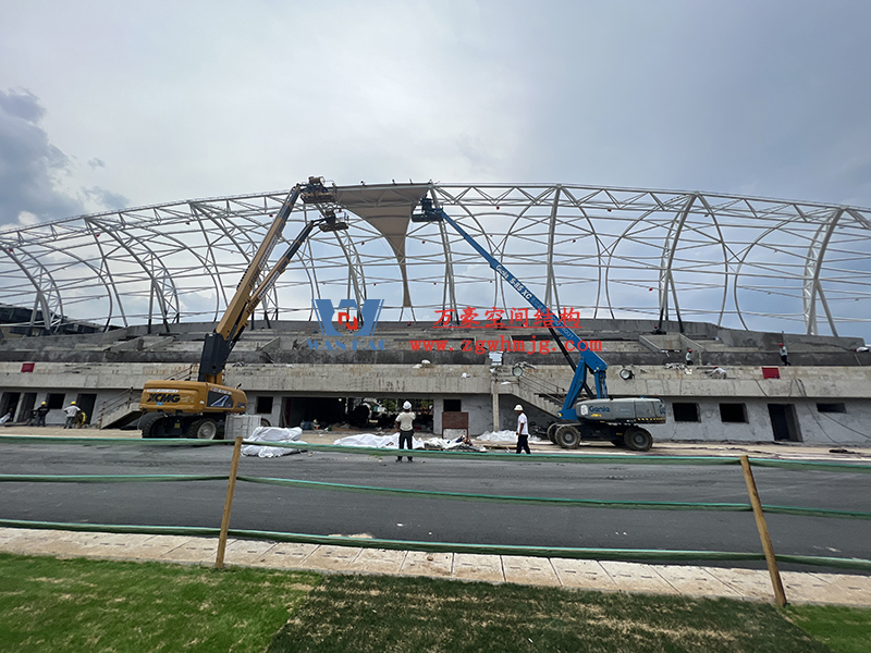 龍泉市體育場鋼膜結構工程位于浙江省麗水市龍泉市大沙曾家張家區(qū)塊,該項目用鋼量200噸,膜結構展開面積3000平米。